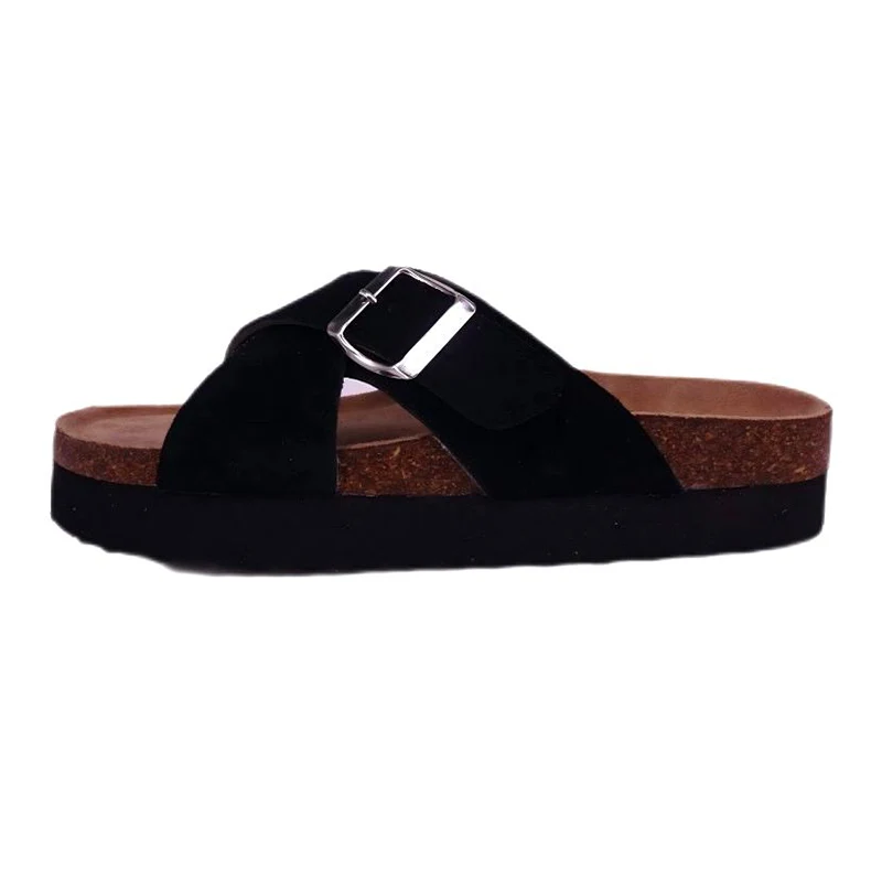 Damensandalen aus echtem Wildleder mit zwei Schnallen und Fußbett